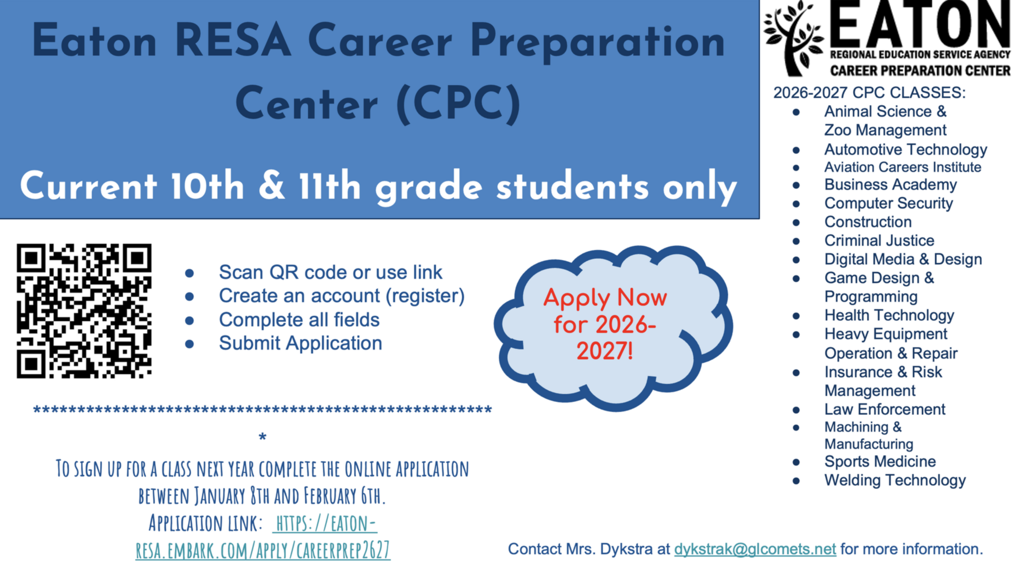 AIS Training Center Spring Open House - Eaton Regional Education Service Agency The AIS / Diesel Repair program with ERESA is hosting an open house on March 9, 2026 from 4-7pm (3175 Remy Dr, Lansing, MI 48906). This is a perfect time to explore the training center, receive an overview of the program, and ask questions. Information that will be covered during this open house: Eaton RESA High School overview, material that will be covered in the class, certifications earned in the program, books and material for each program, post secondary opportunities, arrival and dismissal of the program and more. Food and drinks will be provided during the open house. In order to ensure we have enough food andmaterials, please RSVP hereor contact Shaelyn Sage at Ssage!aisequip.com. Brrr! It’s Cold Outside! Students in need of a coat, hat, or gloves, please stop by Student Services—we’re here to help! The weather is cold outside and students will need warm clothing for waiting at the bus stop or walking to school. Additionally, Ken’s Coat Closet, a free clothing bank serving our community, is available to assist families with clothing needs. Please note that Ken’s Coat Closet’s hours change based on the GLPS schedule. For the most up-to-date hours, visit their Facebook page. To schedule an appointment, please email kenscoatcloset@gmail.com. Stay warm and please don’t hesitate to reach out if you need assistance!